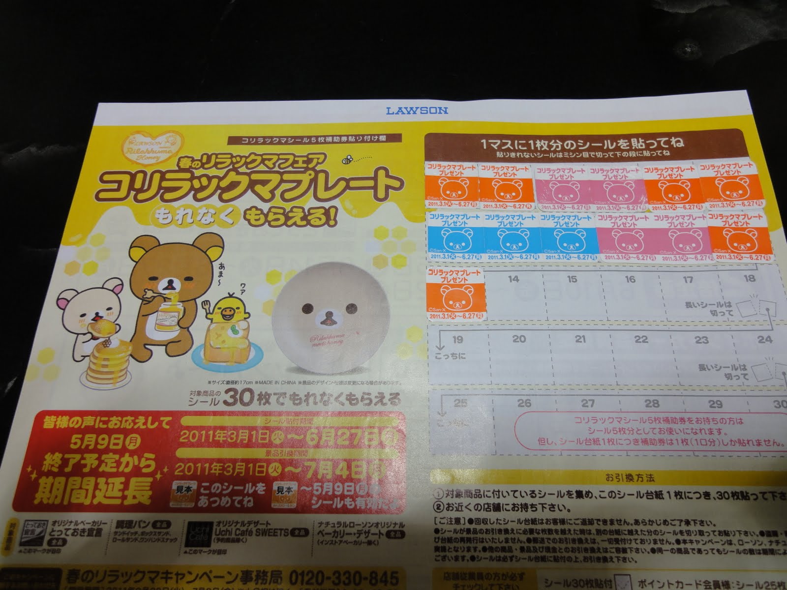 LAWSONオリジナル製品についているリラックマシールを30枚集めるとコリラックマプレートをもらえるというものです。